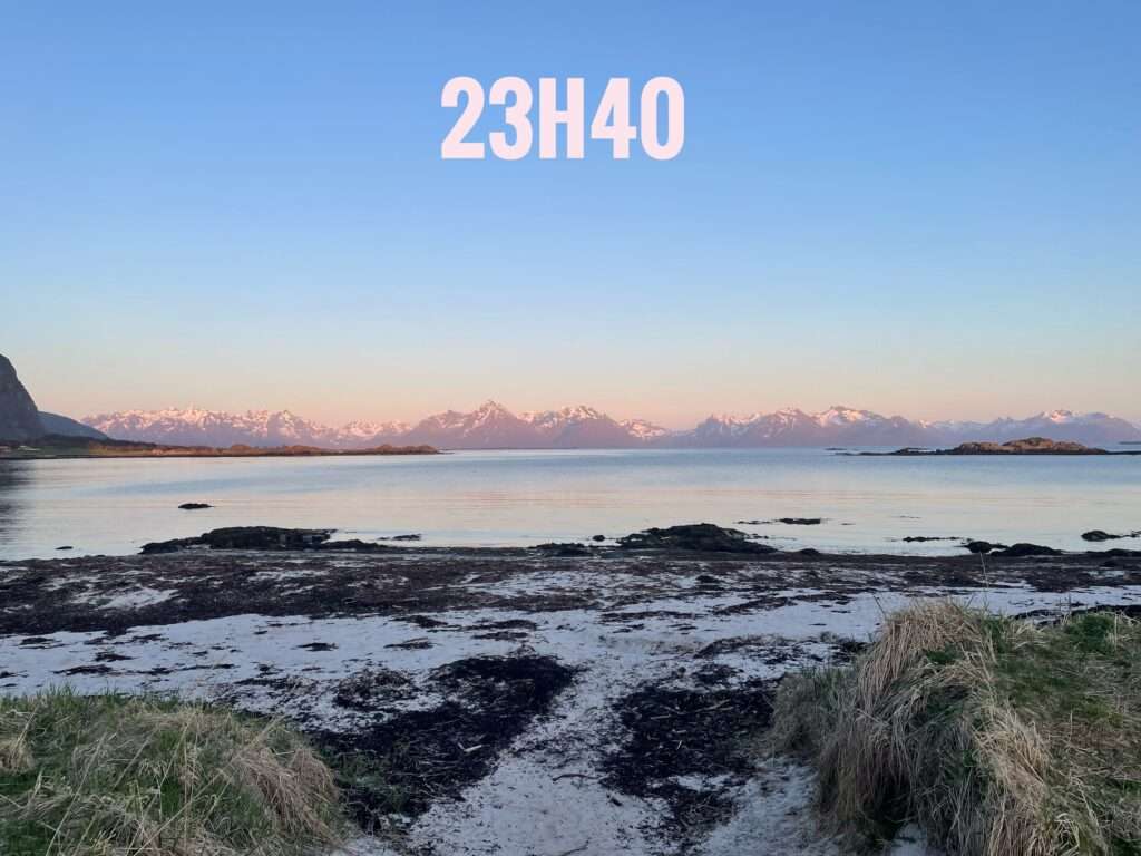 Nous avons pu y vivre notre premier (faux) coucher de soleil. Ce n’était pas encore le « jour polaire » (le soleil ne descend pas sous l’horizon de fin mai à mi-de à début .